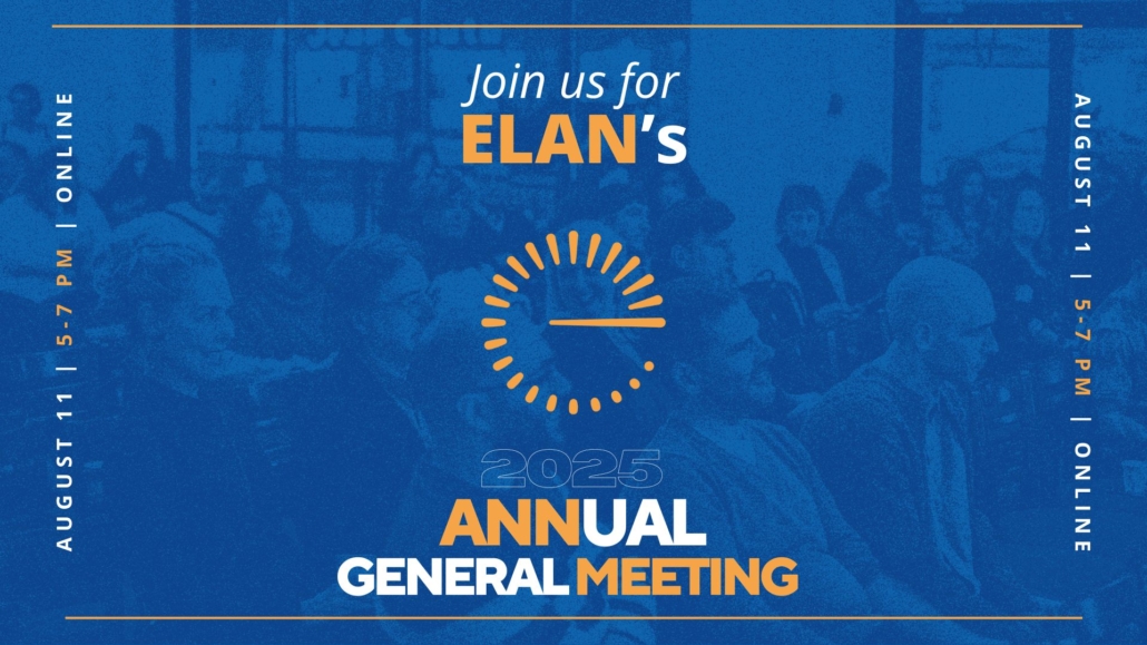 Here you can find the materials for ELAN’s 2024-25 Annual General Meeting. The AGM will take place on Zoom on August 11, 2025 from 5PM-7PM. We look forward to seeing you there!